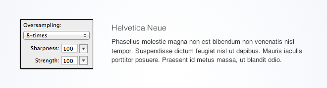 For serif and script fonts, it can be a bit tricky producing decent results because the little serifs are often rendered too hard or too soft. Just try and find the middleway here, through dragging the sliders of sharpness and strength.
